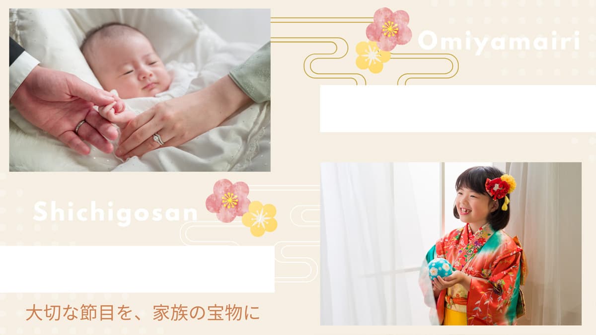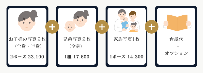 お子様の写真2枚(全身・半身)・兄弟写真2枚(同じもの)・家族写真1枚