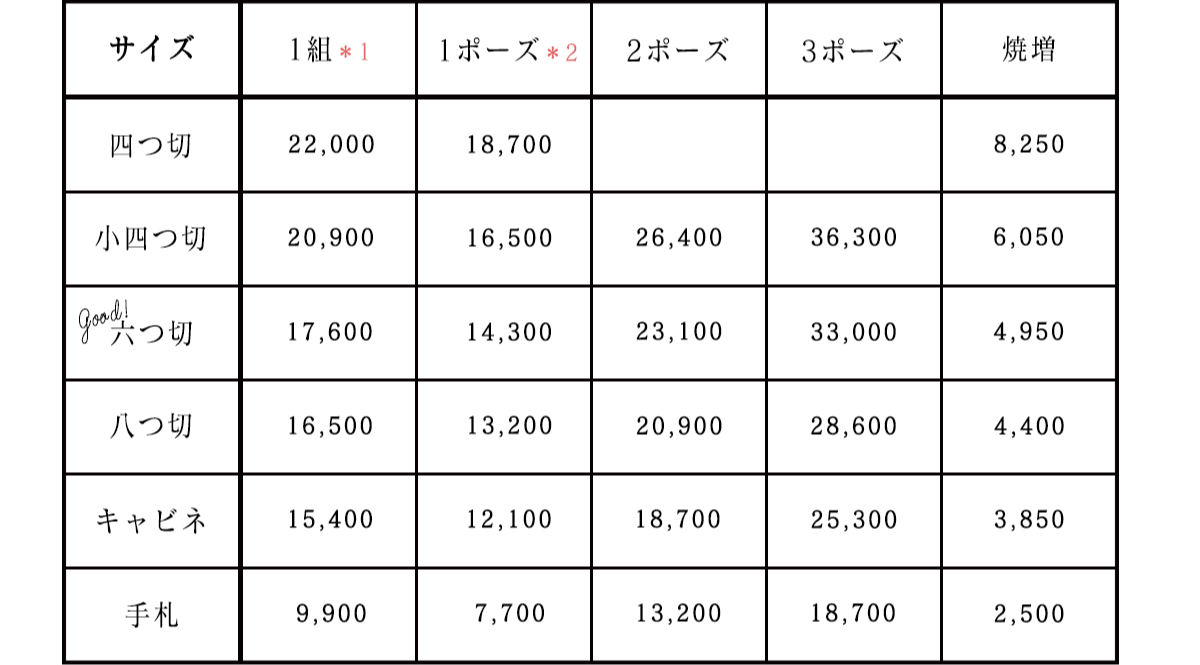 *2 仕上がりは1枚 シチュエーションが増える毎に料金がかかります